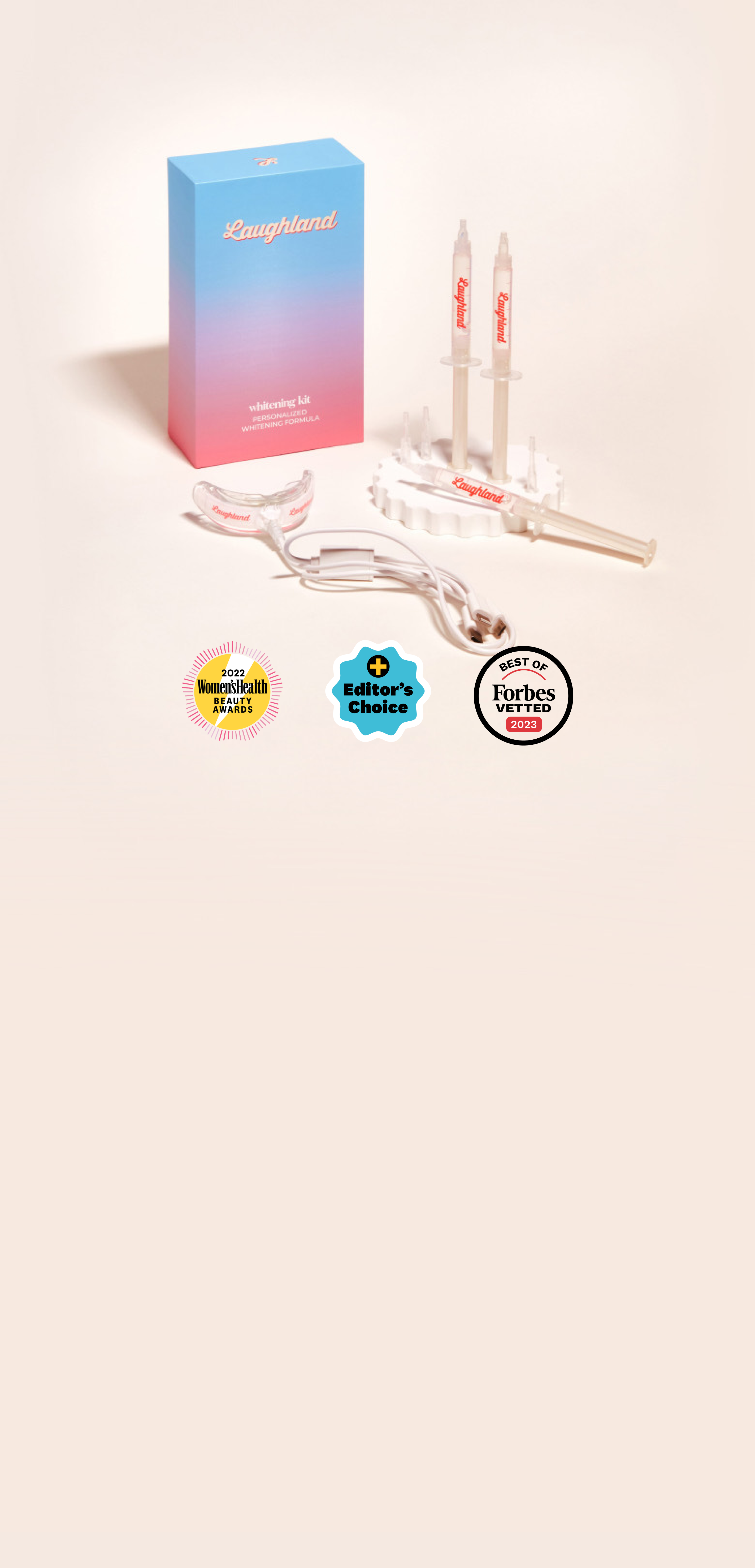 Laughland is the only whitening brand to create custom whitening formulas based on your quiz profile. Just as a dentist would prescribe a specific whitening treatment for you, we can optimize the strength of the whitening serum to your unique sensitivity levels, dental history and diet. Hence, our formulas are 3x more effective and clinically tested to show a 74% improvement in whiteness.